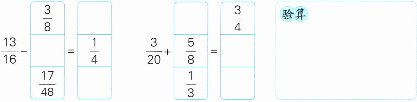 $\frac{7}{16}$ $\frac{9}{16}$ $\frac{11}{24}$ $\frac{3}{5}$ $\frac{31}{40}$ $\frac{29}{60}$(验算略)
