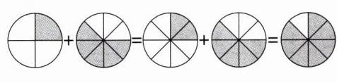 5. [新趋势·说理分析]请你用画图的方式,解释“$\frac{1}{4} + \frac{5}{8}$”为什么等于“$\frac{7}{8}$”。