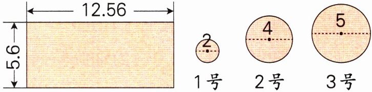3. 冬冬家有一块长方形铁皮(如图),爸爸想用这块铁皮做一个无盖的圆柱形水桶。为了不浪费铁皮,他应选择几号圆形铁皮做底面?为什么?(单位:dm)