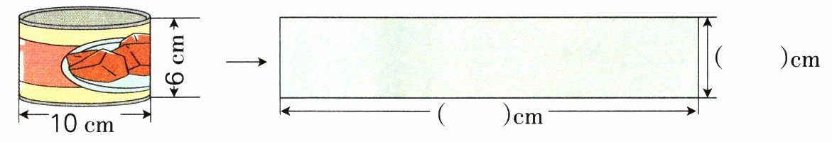 1. 将下图中圆柱形牛肉罐头侧面的标签纸沿高剪开(重叠部分不计)得到一个长方形,在图中标出长方形的长和宽各是多少厘米。