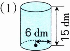 3.14×6×2×15 + 3.14×6²×2 = 791.28(dm²)@@3.14×4×10 + 3.14×(4÷2)²×2 = 150.72(dm²)