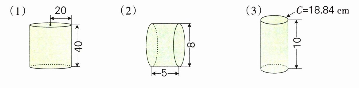 3.14×20²×40 = 50240(cm³)@@8÷2 = 4(cm) 3.14×4²×5 = 251.2(cm³)@@18.84÷3.14÷2 = 3(cm)