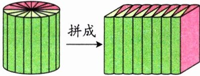 解析:圆柱形木块平均切成三块,表面积增加了2×2 = 4(个)底面积;平均切成四块,表面积增加了2×2 = 4(个)以圆柱底面直径为宽、以圆柱高为长的长方形的面积,据此求出圆柱的底面半径和高,再求体积。