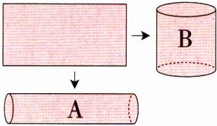 (1)如图,一张长方形纸分别沿长和宽围成不同的圆柱形纸筒(接口处不重叠)。圆柱A的侧面积( )圆柱B的侧面积。