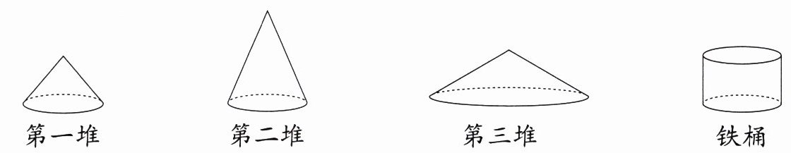 (2)(广州期末真题)如下图,要把下面三堆圆锥形沙子分别装在圆柱形铁桶中,铁桶厚度忽略不计。下面是三名同学经过测量后得出的结论。