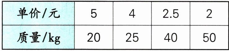 1. 学校食堂购买了一些水果,水果的单价和购买的质量如下表所示。