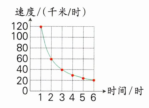解析:解答时,先观察给出的两个变量,一个是速度,一个是时间,观察图象发现:速度随着时间的变化而变化,并且速度×时间=路程(一定),所以速度和时间成反比例关系。@@30@@解析:观察图象发现,如果想要4小时行完全程,速度对应的点是30千米/时。