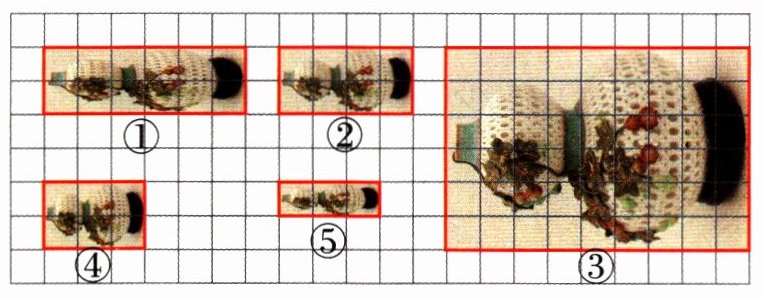 (2)图中( )号图形是①号图形缩小后的图形,是按( : )缩小的。