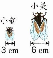 4. 蝉鸣是盛夏的象征。如图,小新和小美分别画同一只夏蝉,若小新是按1:$m$的比例尺画的,则小美是按( )的比例尺画的。