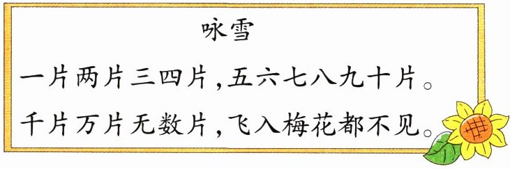 1. [新趋势·开放式题]下雪啦! 看着雪中的梅花,萍萍想到了《咏雪》这首古诗,并用画笔记录下了眼前的美景。