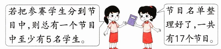 (2)同理,如果有5个番石榴,列式解答:5÷3 = 1(个)……2(个),1 + 1 = 2(个),总有一个碗中至少放了2个番石榴。