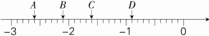 2. 直线上有A、B、C、D四个数,其中最接近-2.3的数是( )。