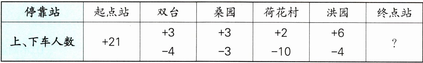 5. [新情境·环境保护]今年的世界环境日当天,某公交公司通过多样化的环保主题车厢为乘客带来一场“环保盛宴”。这天,一辆环保主题公交车每个停靠站的上、下车人数如下表所示。(上车为正,下车为负)
