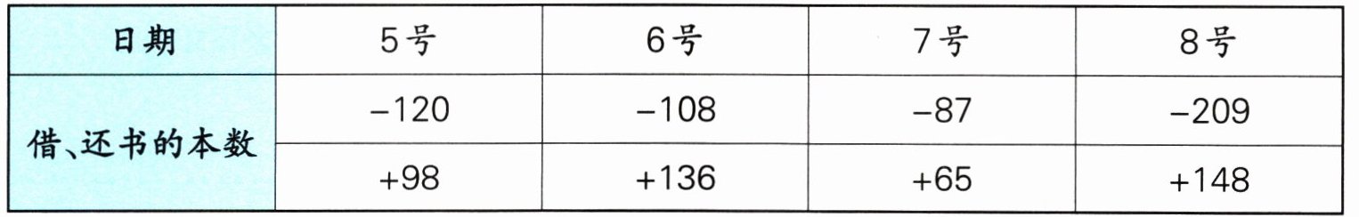 3. 下表记录了学校图书馆四个借书日图书的借出和还回情况。借出记为负数,还回记为正数。