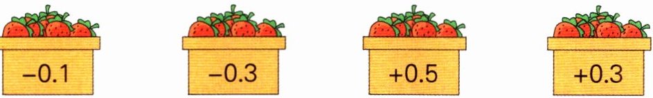 2. 学校草莓园可以采摘草莓啦! 每筐草莓以5 kg为基准,超过的千克数记为正数,不足的千克数记为负数,记录如下图所示(单位:kg)。这4筐草莓的平均质量是多少千克?