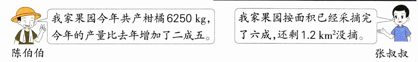 (2)陈伯伯家的果园去年产柑橘多少千克?