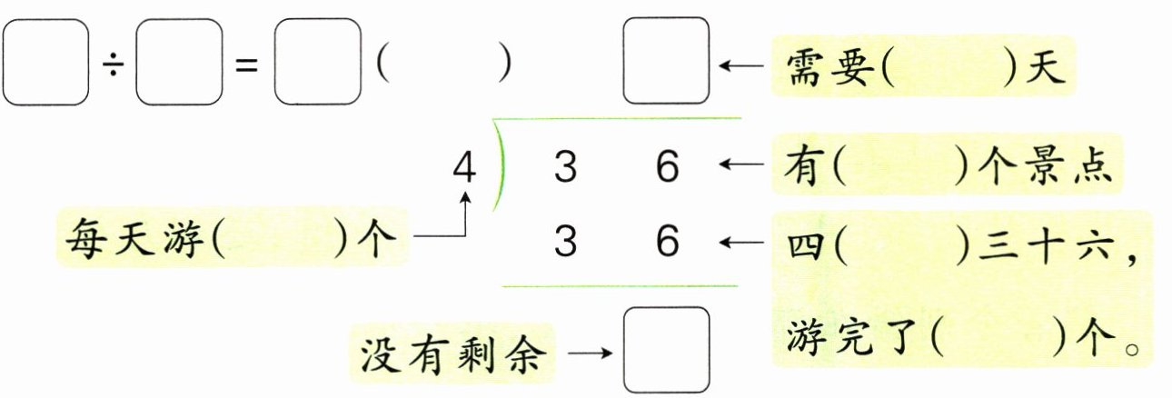 1. 广州塔等36个景点入选2024年广东必去景点榜,小明每天游4个景点,需要( )天游完这36个景点。