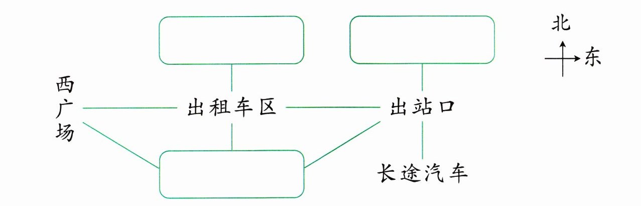 2. 文文在出站口做引导,张阿姨要乘坐公交车,她可以怎样为张阿姨指路呢?(用方位词表示)