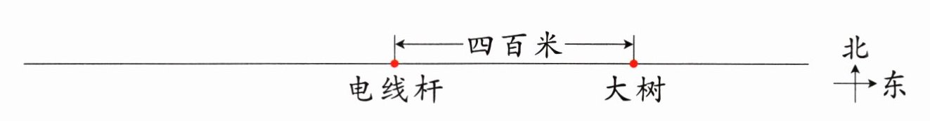 3. 按要求标出黄旗和蓝旗的大致位置。在电线杆的西面五百米处插一杆黄旗,在大树的东面二百米处插一杆蓝旗。