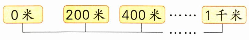 4. 公园的健康跑道长1千米,每隔200米设置一个路程牌(如图),一共设置了多少个路程牌?