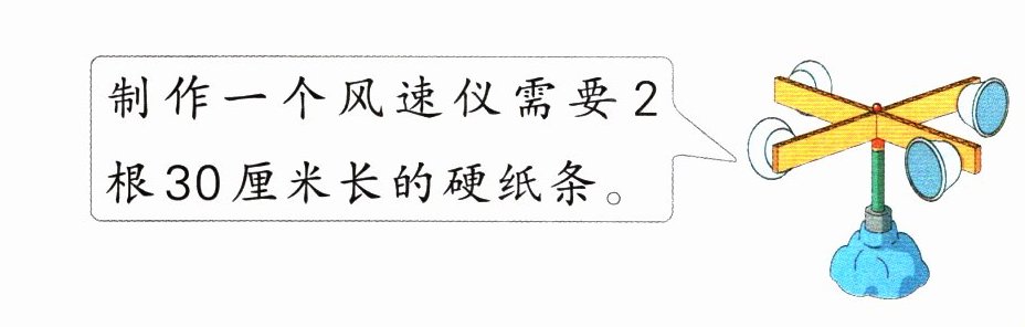 3. 学校气象小组要制作简易风速仪,他们准备了一根20分米长的硬纸条,这根硬纸条最多可以做多少个这样的风速仪?
