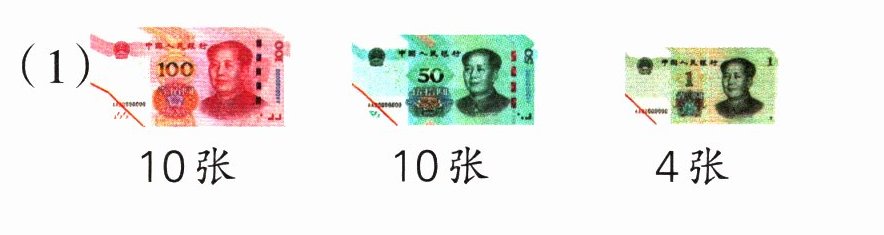 10张 10张 4张 一共有( )元。