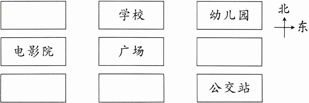 (1)商店在幼儿园的南面,图书馆在广场的西北方向。