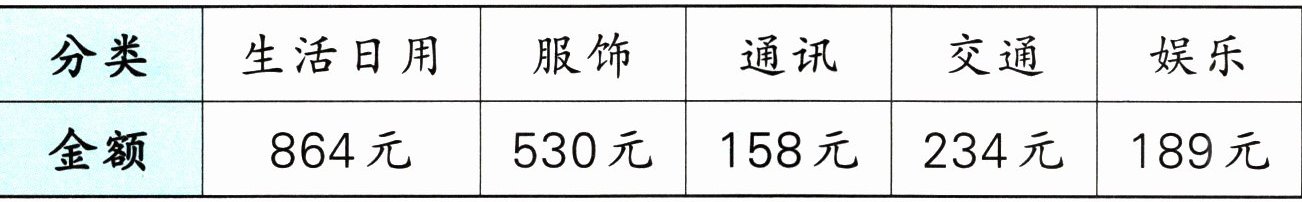 3. [教材改编]张阿姨整理了自己一个月的花销情况。