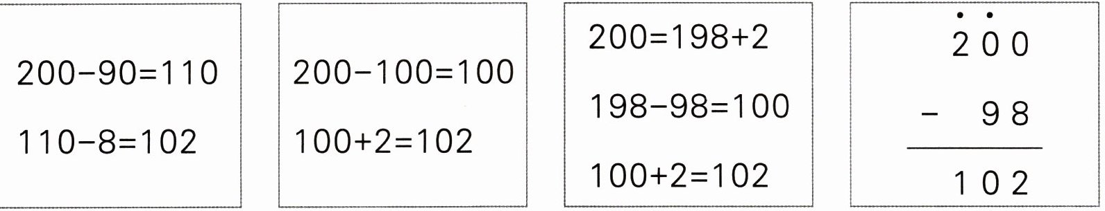 2. [新趋势·算理探究]计算“200 - 98”,下面 4 种方法中正确的有( )种。