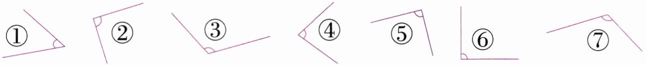 3. 分别画出一个直角、一个锐角和一个钝角。