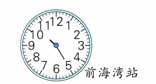 (1)这辆公交车晚上( )从博览中心站发车,晚上( )到达前海湾站。