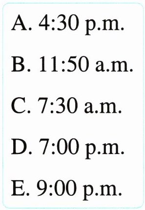 ( ) 4. I have lunch from ______ to 12:20 p.m. D. 7:00 p.m.
