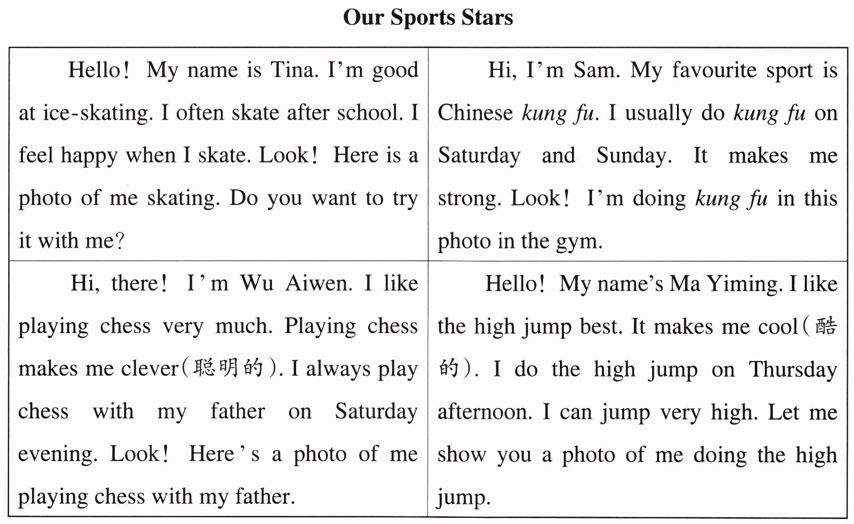 十一、新华小学宣传栏张贴了“校园体育之星”的海报,阅读以下简介,完成任务。
