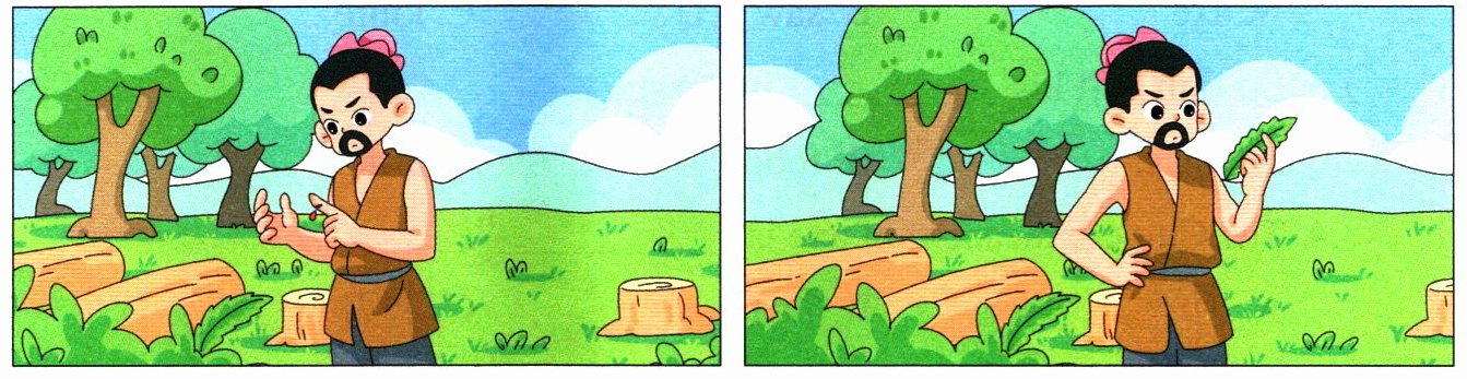 ③ Suddenly, a leaf cut his finger. He thought, “How could such a small leaf hurt my finger?”