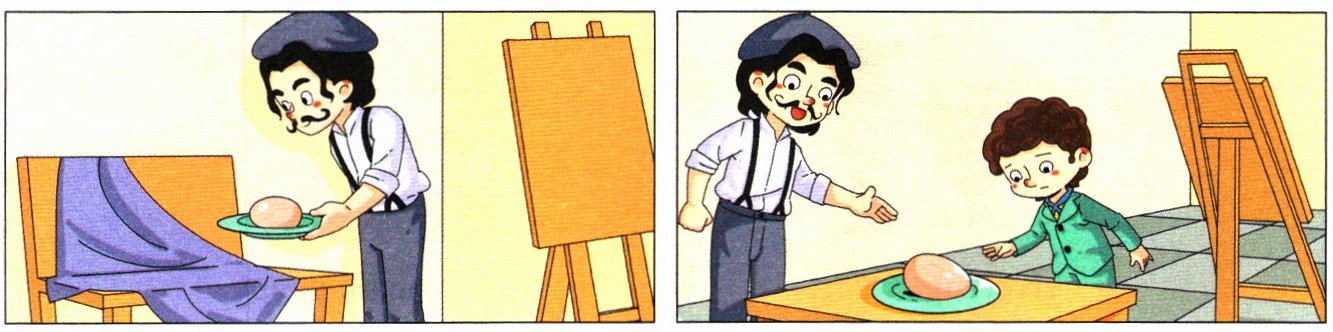 ⑤ But the next day, the teacher still put an egg on the table and asked Leo to draw. Leo looked at the egg. He was sure it was the one he drew yesterday.
