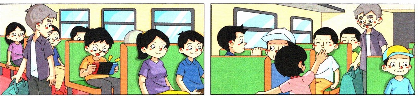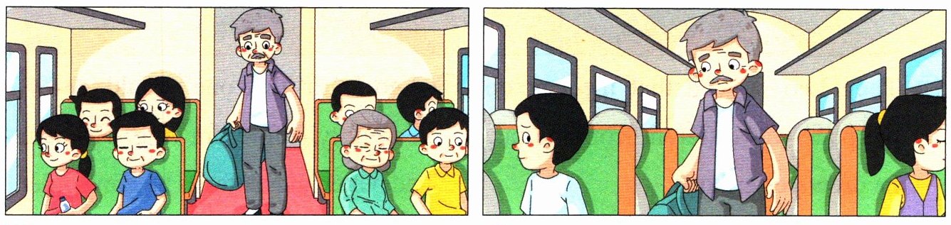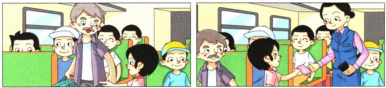 ⑤ “Thank you, dear! My ticket is standing - room - only. I’ll stand.” the old man said. “My ticket is also standing - room - only. I have more energy to stand.” the girl said.