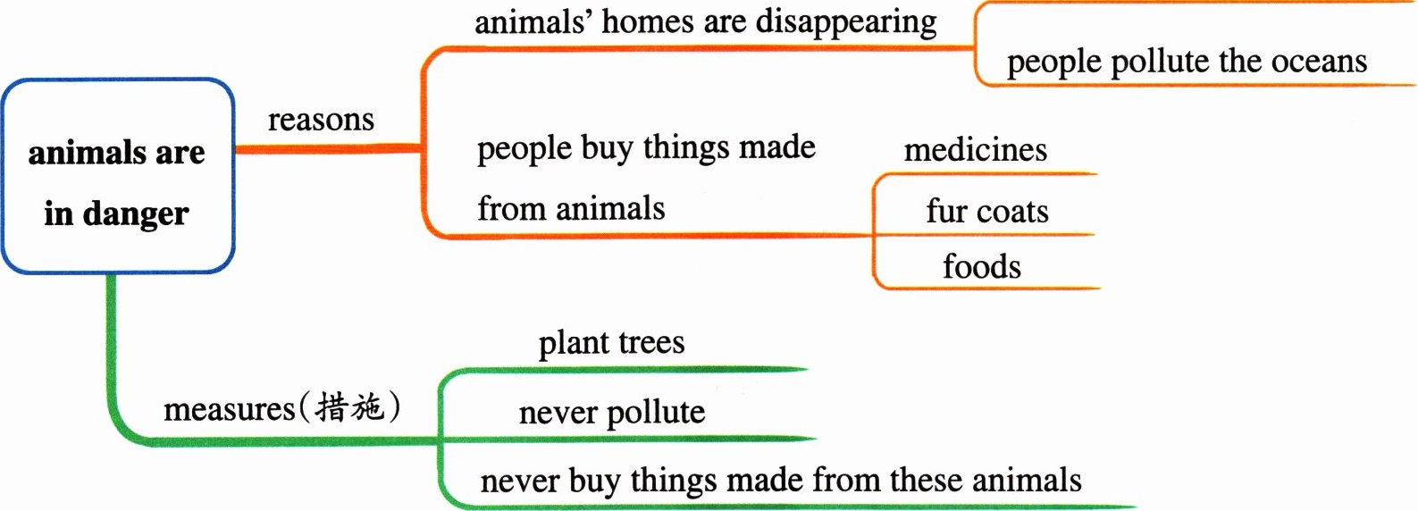 地球上有很多濒危动物,这与人类活动密切相关。家民和他的同学正在上一节自然课,他们对此进行深刻剖析并得出以下结果。读思维导图,复述课文,完成下列任务。