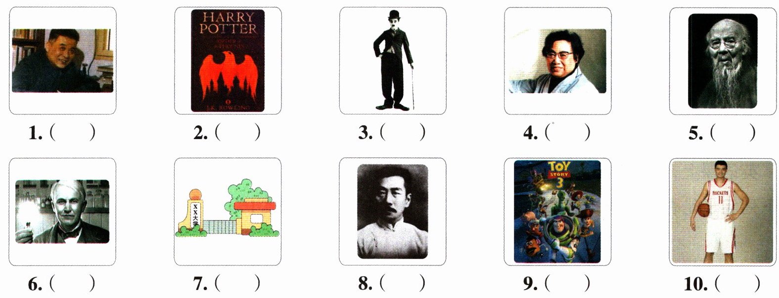 一、听句子三次,选出相应的图,把其大写字母编号写在相应的括号内。