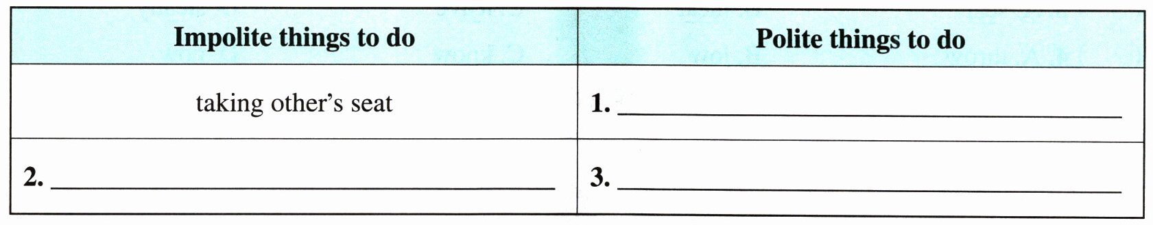 任务一:读短文,找出短文中礼貌的行为和不礼貌的行为,填入表格中。