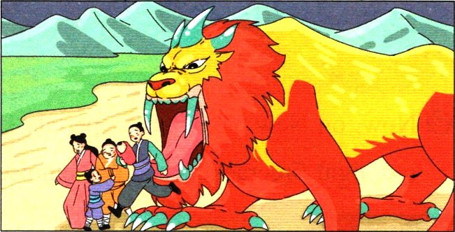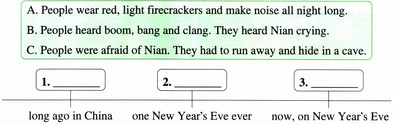 ① Long ago in China, there was a dragon beast called "Nian". People were afraid of it.