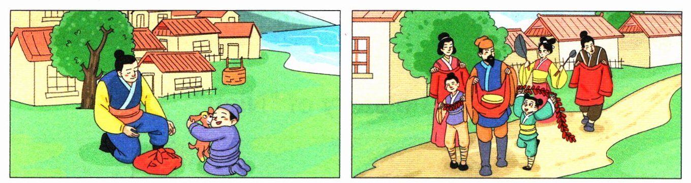 ⑦ On New Year's morning, the old man went away. Nian went away, too. And he never came back.