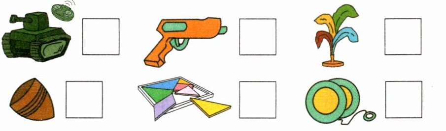 ①毽子 ②陀螺 ③溜溜球 ④玩具枪 ⑤七巧板 ⑥遥控坦克