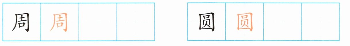 1. “周”是( )结构的字,笔顺规则是( );“圆”是( )结构的字,笔顺规则是( )。①三面包围 ②全包围 ③先外后内 ④先外后内再封口