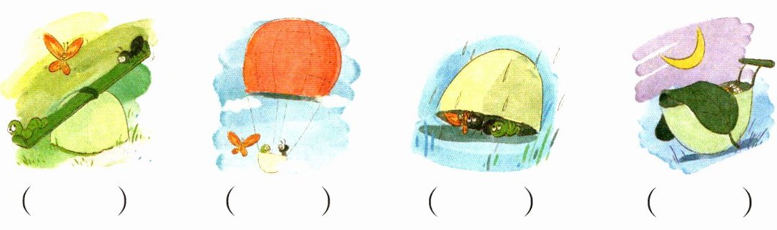任务二 看图,想一想:小虫子、蚂蚁和蝴蝶用鸡蛋壳做了哪些事情?它们有什么有趣的经历?把它们这一天的经历写下来吧!