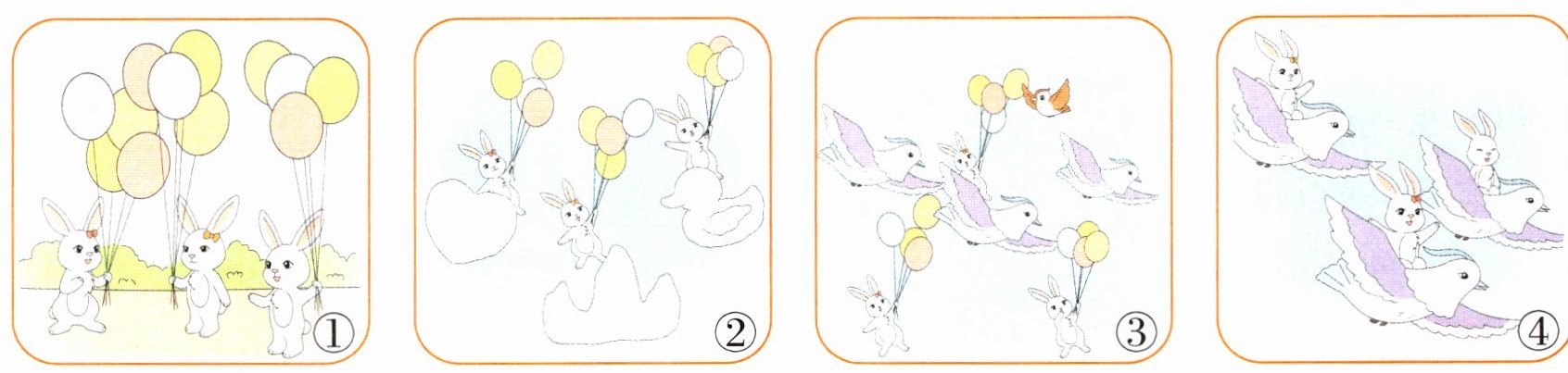 过了一会儿,小兔子们遇到了一群美丽的鸟儿,鸟儿问小兔子:“你们乘着气球去哪里呀?”小兔子说:“我们要去野外郊游,你们要和我们一起去吗?”鸟儿兴奋地说:“好呀好呀,你们坐到我们的背上吧,我们驮你们过去。”于是,小兔子们坐上鸟儿们的背,和鸟儿们一起唱啊,笑啊。