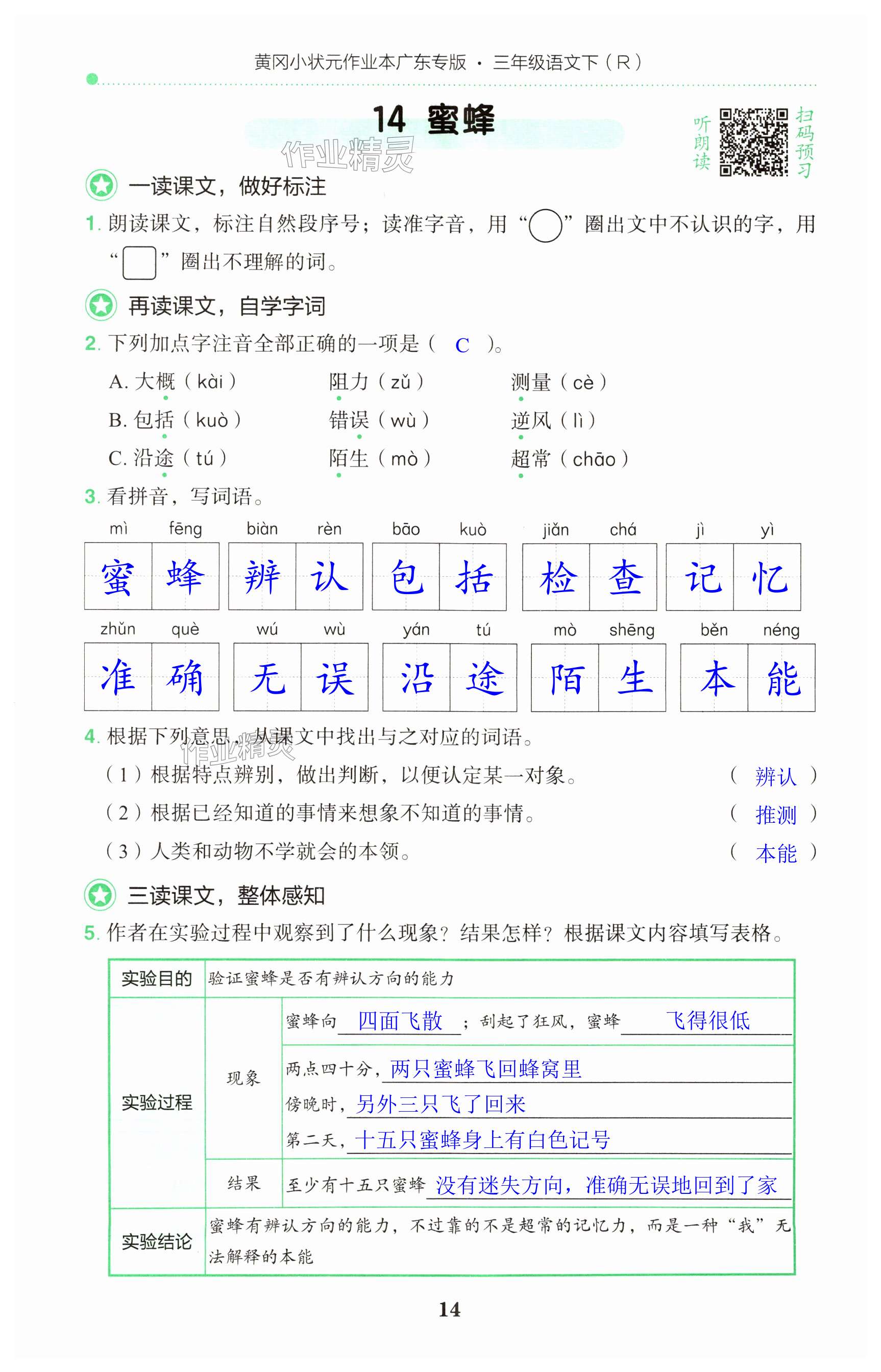 注:目前有些书本章节名称可能整理的还不是很完善,但都是按照顺序排列的,请同学们按照顺序仔细查找。练习册 2025年黄冈小状元作业本三年级语文下册人教版广东专版 答案主要是用来给同学们做完题方便对答案用的,请勿直接抄袭。