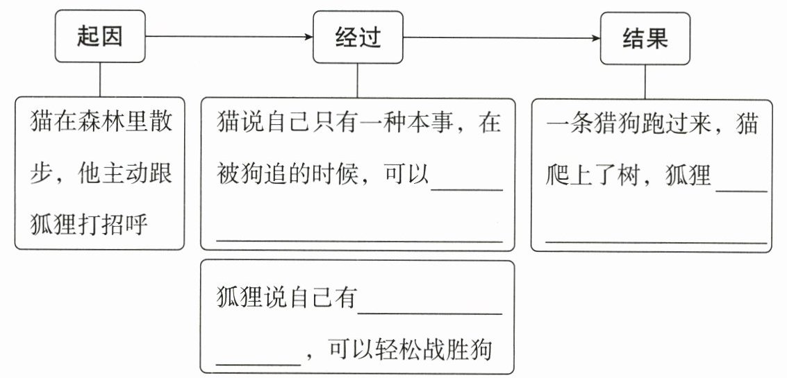 1. 了解故事的主要内容,把思维导图补充完整,并试着复述故事。(3分)