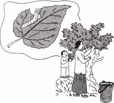 种桑数亩,春日发芽,芽渐大而成叶。农家妇女,携①剪刀与筐,同往采桑,以为②饲③蚕之用。