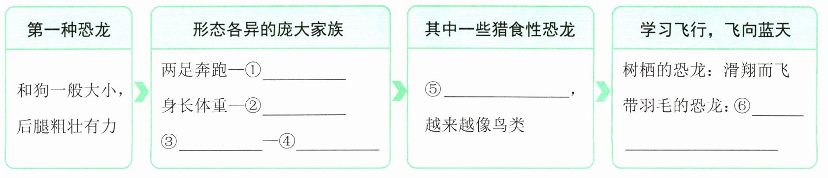 五、思维题 请你来当解说员,介绍恐龙飞向蓝天演化成鸟儿的过程。(目标:203)