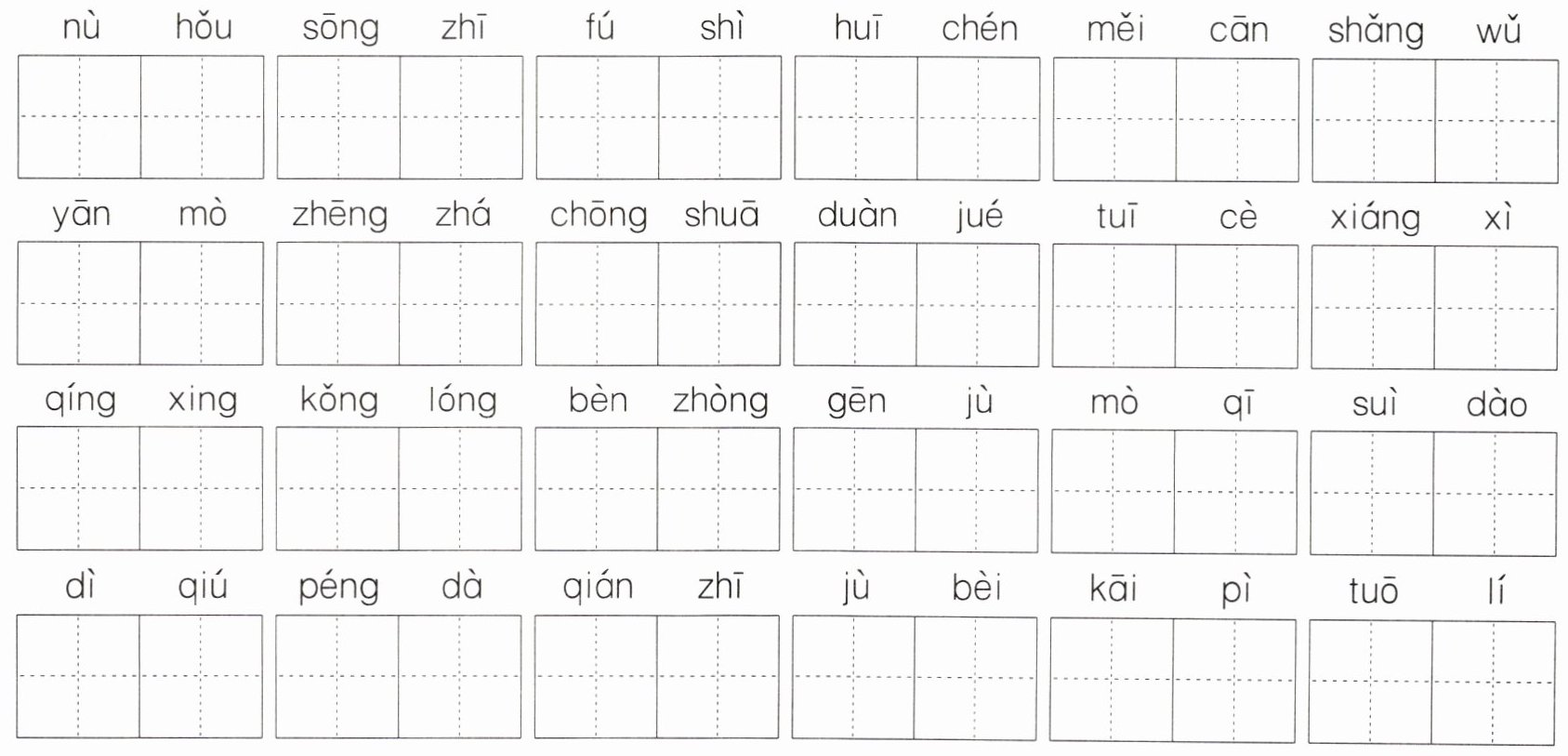 乒乓(pīng√ pīn) 敏捷(jié√ jiě) 崭新(zhǎn√ zǎn) 癌症(zhèng√ zhēn)